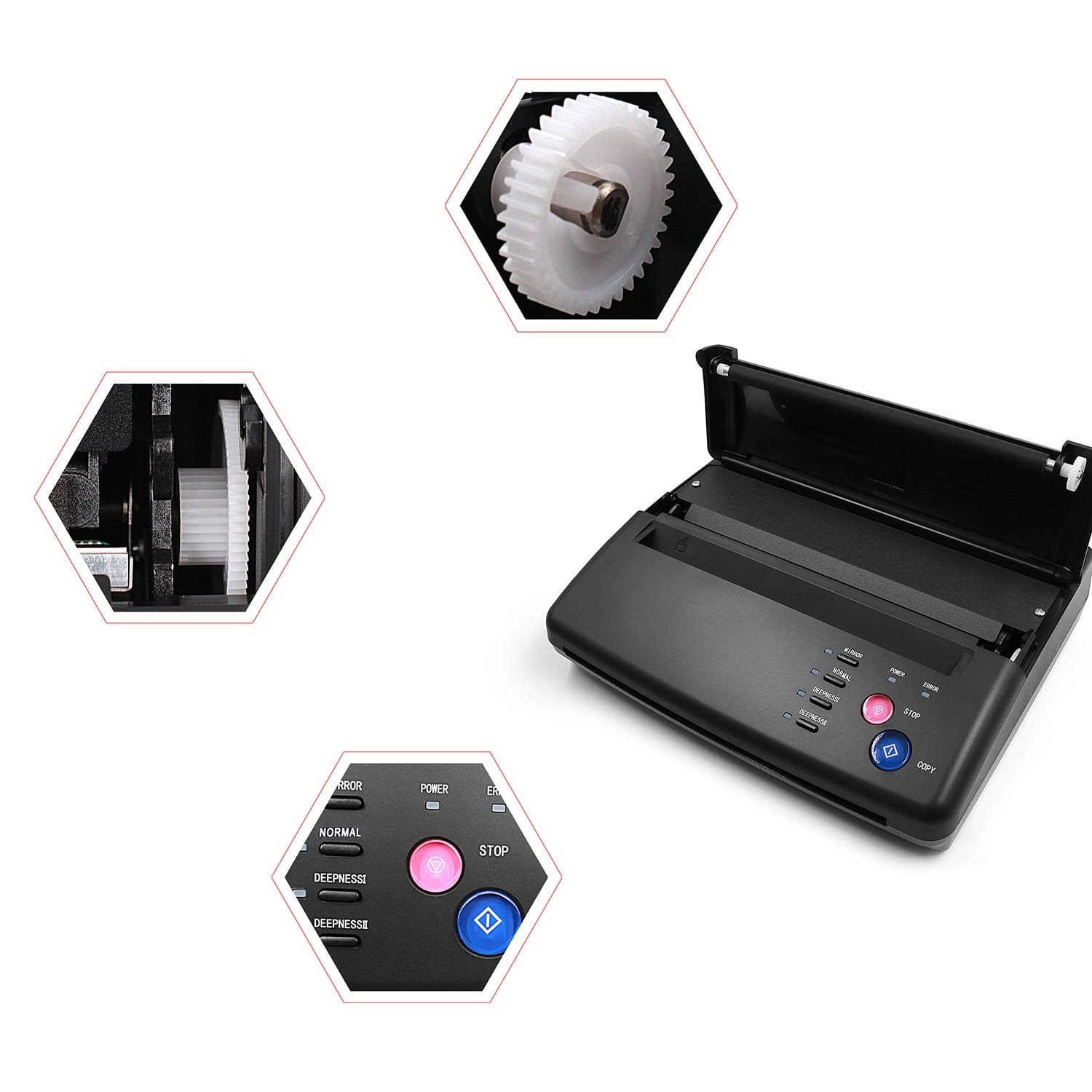 Koniec z wielogodzinnym, ręcznym przerysowywaniem wzorów i niedokładnymi liniami! Czas to pieniądz, a precyzja to podstawa Twojego rzemiosła. Nasza profesjonalna kopiarka termiczna to absolutny must-have i prawdziwy koń pociągowy każdego studia tatuażu. Została zaprojektowana, by maksymalnie usprawnić Twój workflow, gwarantując idealnie odwzorowany szablon za każdym razem. Skup się na tym, co najważniejsze – na sztuce tatuowania, a tworzenie kalki pozostaw niezawodnej maszynie.