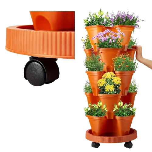 Przedstawiamy rewolucyjny pionowy system ogrodowy, który przekształci Twój balkon, taras, patio, a nawet wnętrze domu w kwitnący ogród! Nasza wielopoziomowa wieża do uprawy roślin została inteligentnie zaprojektowana, aby zaoszczędzić cenną przestrzeń, jednocześnie oferując mnóstwo miejsca na Twoje ulubione zioła, truskawki, sałaty, pomidory koktajlowe, kwiaty i wiele innych.