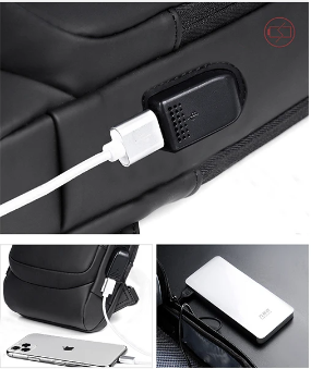 Dodatkowo został wyposażony w gniazdo USB, aby bez problemu podłączyć power bank wewnątrz plecaka, a telefon bezpośrednio ładować z gniazda znajdującego się na zewnątrz plecaka.