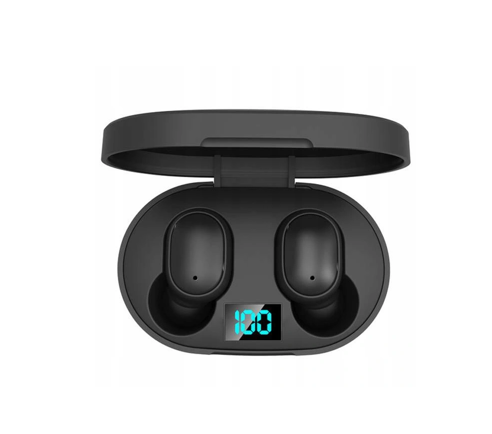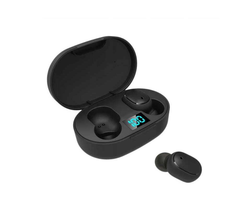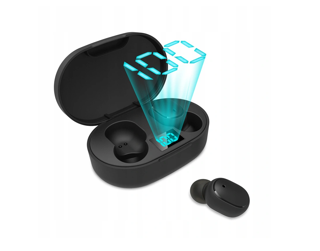 Słuchawki bezprzewodowe E6S TWS to najnowszy model bardzo znanych słuchawek z serii 6S (słuchawki wyglądają jak Airdots REDMI Xiaomi). Model E6S został dodatkowy wyposażony w wyświetlacz pokazując poziom naładowania słuchawek.