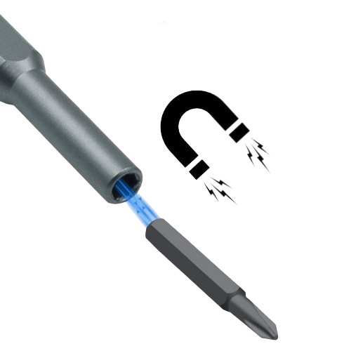 Znajdujący się w nim magnes zapobiega niekontrolowanemu wypadaniu nakładanych końcówek.
